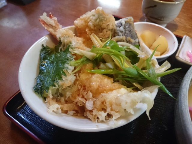 ちゃんとした天丼に口安めの青ネギが添えてあるって感じである。