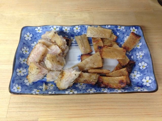 マンボウの干物かな。不思議な食感と気の抜けたふぐのような味わい。