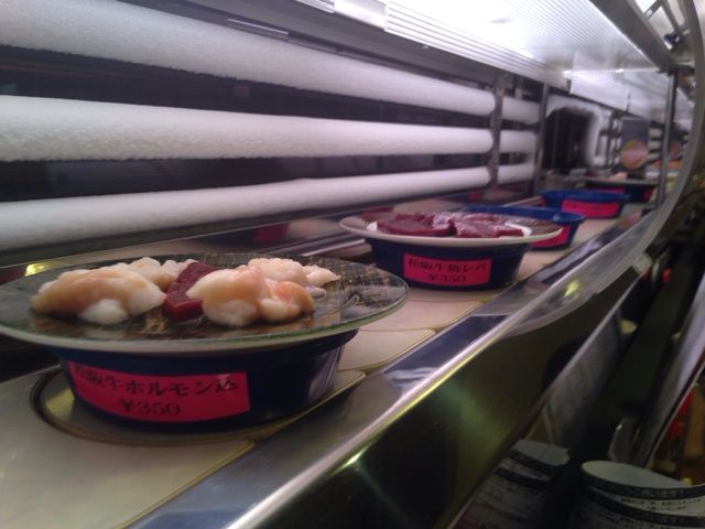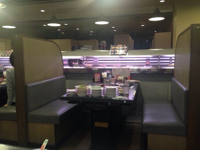 遠目でみると回転すしですが…。
