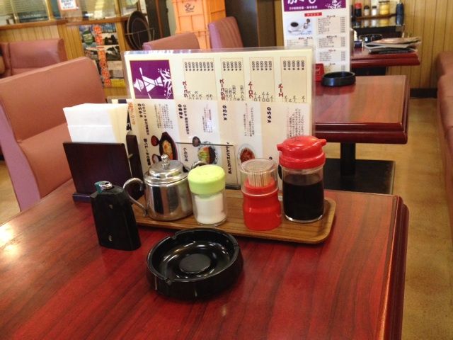 灰皿にライターまで完備された喫茶店である。