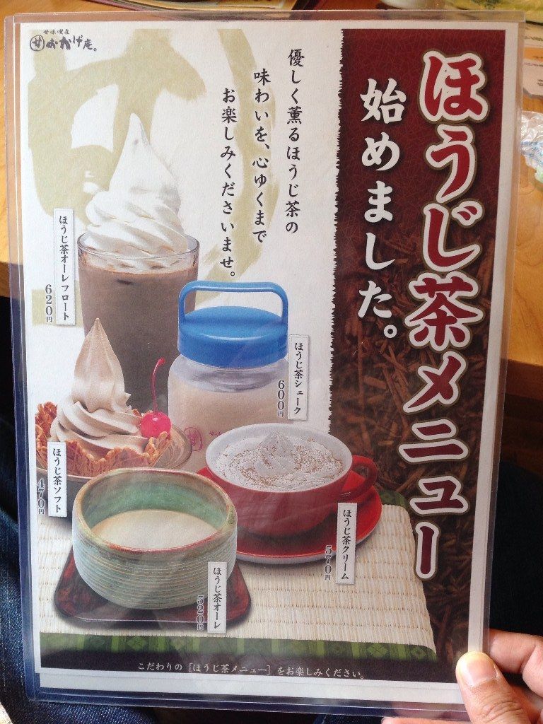 水の代わりにほうじ茶が出てきますが、ほうじ茶のメニューも…。