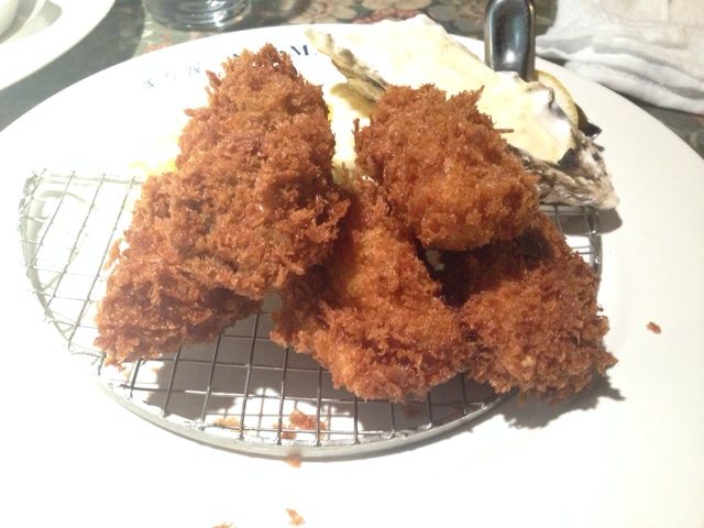 衣がザクザクで結構火が通っている懐かしい感じのカキフライだ。
