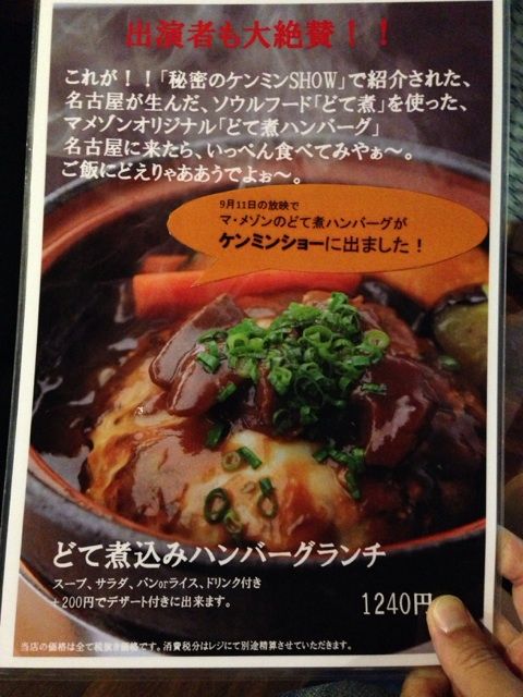 マ・メゾンといえば名古屋では有名な洋食屋さんで、なんと言ってもハンバーグが有名である。
