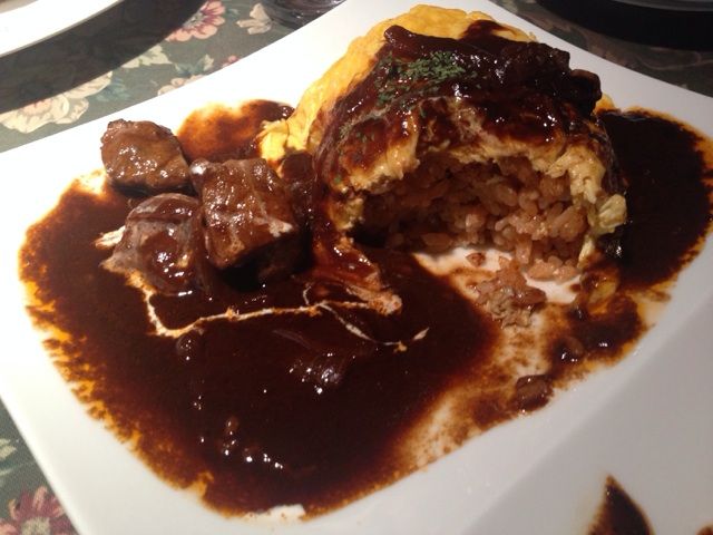 デミグラスソースは苦みの利いた大人の味。