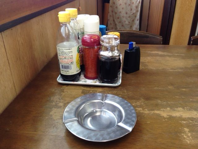 調味料がたくさんに灰皿がノスタルジック食堂の証。