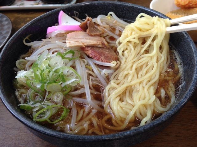 やわ目にゆでた市販品って感じなんですが、ここで食べると美味しく感じるから不思議である。
