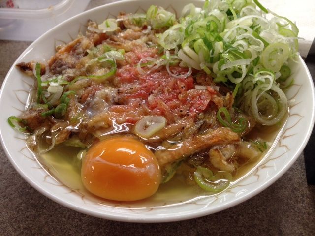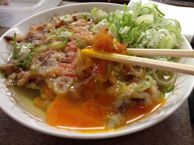 私「あっ、かき揚げって特製ってことですね。特製でお願いします。あっ!それに生卵落としてください。」