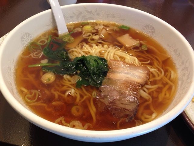 チャーシュー、シナチク、ほうれん草は珍しい。