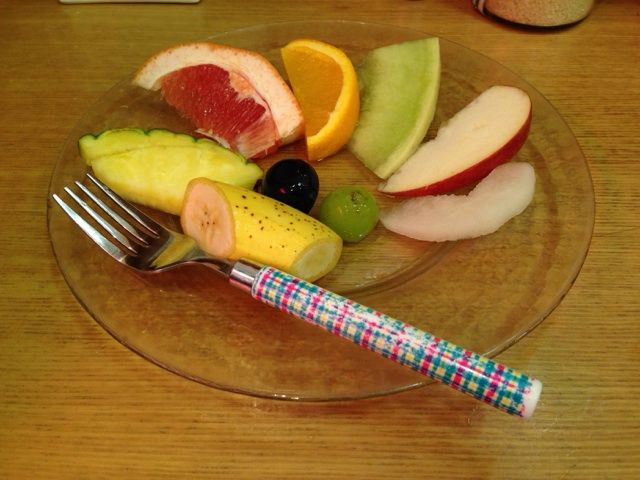 ジュースを頼むとサービスに出てくるフルーツサラダ。