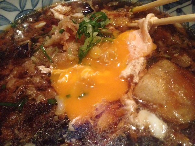 そして生卵をいれてくださいとお願いしたら、出汁で少し温めてくれ、天抜きに投入してくれた。