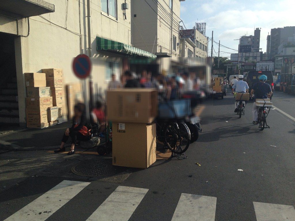 お盆休みとはいえ平日。意外と空いている雰囲気の築地場内市場です。