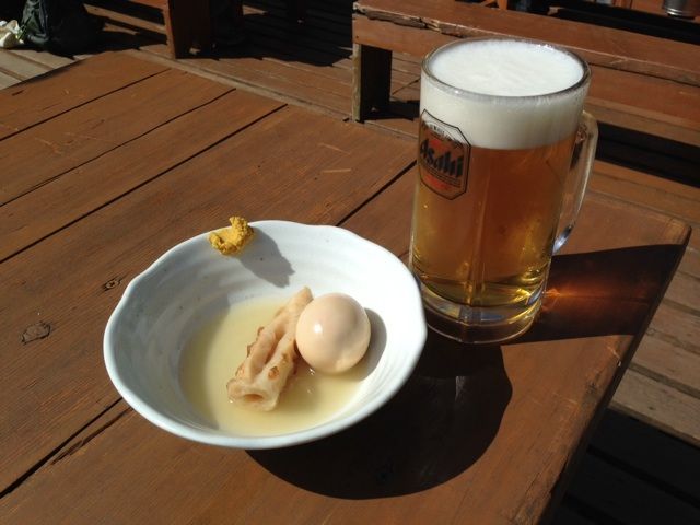 はっきり言ってうまいまずいは関係なくて、ここで暖かい物をつまみに冷たいビールが飲めるだけで幸せなのである。