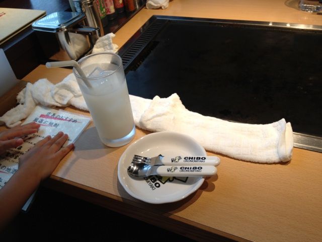 子供が鉄板でやけどをにしないように、おしぼりで柵を作ってくれた様子。