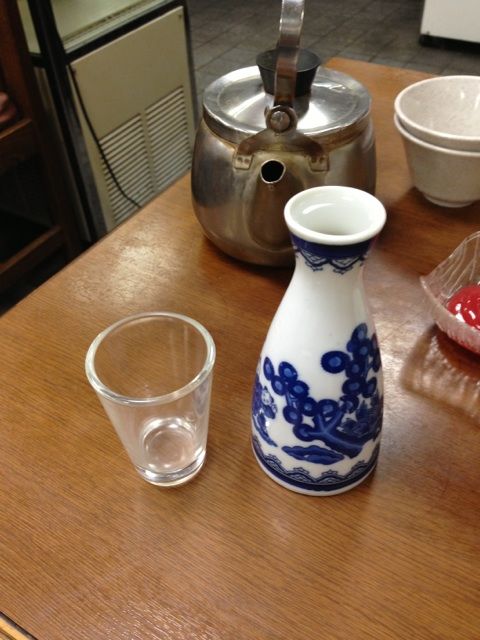 お茶は薬缶で出てきます。湯飲みに注ぐと茶柱が!