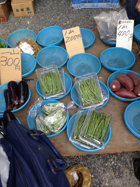 インゲンが一山200円。朝は市場で天種を買ってきたので迷わず購入。