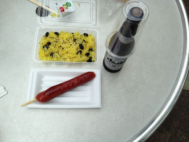 とりあえずビール360円とジャンボフランク300円とラーメン500円ですな。