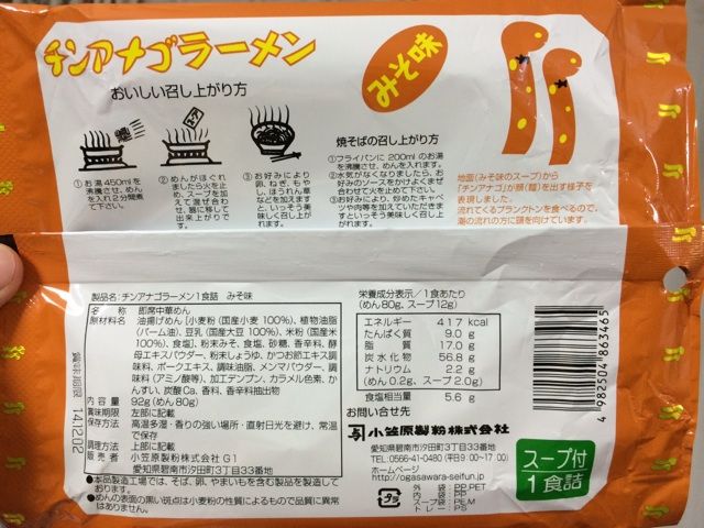 小笠原製粉キリンラーメンといえば無化調なんだが、チンアナゴには書いてありません。