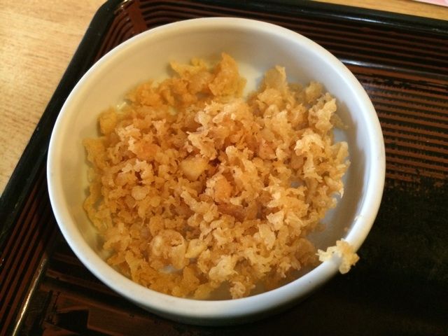 なんでこんなものが付いてるんだ!?とおもった天かすが固くて、歯触りにアクセントを加えパターンを変えて味わえるようにした付け合せでした。