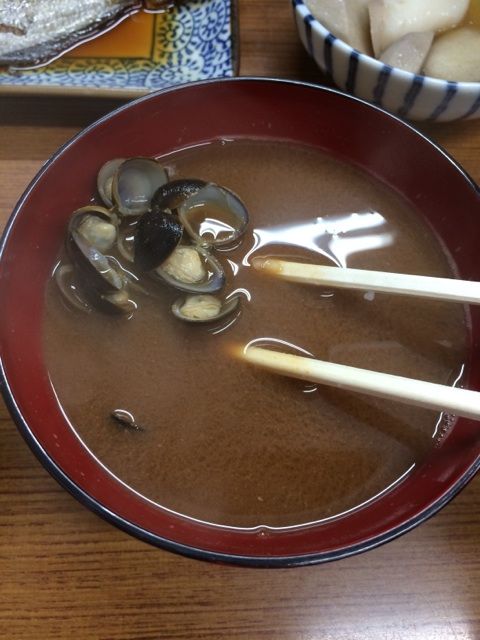 豚汁と野菜と貝の選択肢がある味噌汁。