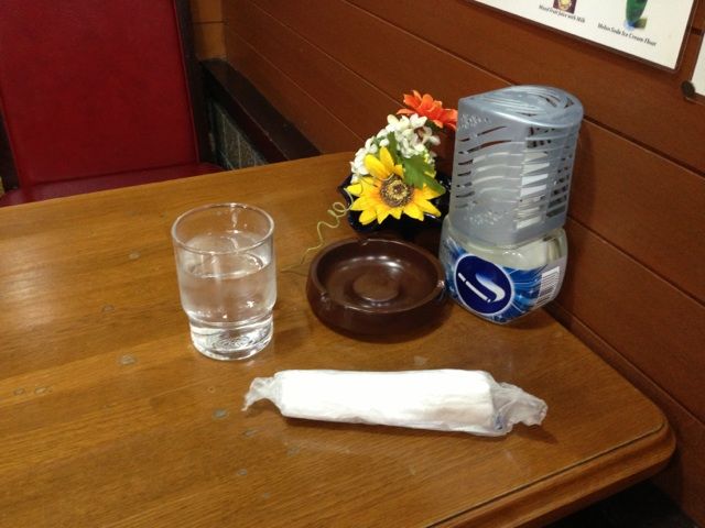 テーブルの上には灰皿に、タバコの臭い消しの芳香剤。妙齢のお姉さんが二人で切り盛りしております。