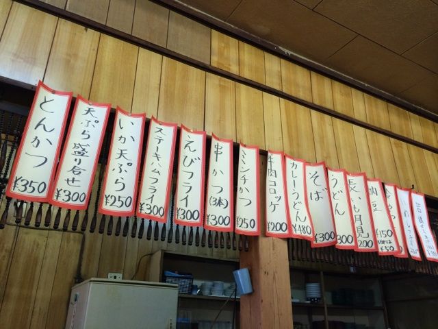 他にはめし大200、中170、150、赤だし100、玉子焼180、目玉焼180などの張り紙があった。