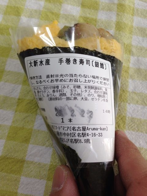市場で手巻き寿司@大新水産柳橋中央市場TwitterFacebookはてブPocketLINEコピー 2014.05.14本日は柳橋中央市場、マルナカ食品センターにある大新水産さん。マップ参照http://www.marunaka-center.co.jp/shoplist/floormap.pdf?1365814144 こちらの味噌漬けはすでに我が家の定番となっております。市場の味噌漬け その大新水産さんのショーケースの上にこんなポップがあります。 商品が入っている手巻き寿司ですね。 もう4ヶ月も前の映像なんですね。携帯に眠っていたのを掘り起こしてしまいました。 酢飯と卵と銀鱈の味噌漬けのバランスがよく美味しいですよ。柳橋中央市場散策のお供にいかがでしょう!? 大新商店http://www.daishinsuisan.jp/pc/index.html名古屋市中村区名駅4-15-2マルナカ食品センター本館共有:Facebook で共有 (新しいウィンドウで開きます)FacebookX で共有 (新しいウィンドウで開きます)Xいいね:いいね 読み込み中…関連市場で手巻き寿司@大新水産柳橋中央市場TwitterFacebookはてブPocketLINEコピー 2014.05.14本日は柳橋中央市場、マルナカ食品センターにある大新水産さん。マップ参照http://www.marunaka-center.co.jp/shoplist/floormap.pdf?1365814144 こちらの味噌漬けはすでに我が家の定番となっております。市場の味噌漬け その大新水産さんのショーケースの上にこんなポップがあります。 商品が入っている手巻き寿司ですね。 もう4ヶ月も前の映像なんですね。携帯に眠っていたのを掘り起こしてしまいました。 酢飯と卵と銀鱈の味噌漬けのバランスがよく美味しいですよ。柳橋中央市場散策のお供にいかがでしょう!? 大新商店http://www.daishinsuisan.jp/pc/index.html名古屋市中村区名駅4-15-2マルナカ食品センター本館共有:Facebook で共有 (新しいウィンドウで開きます)FacebookX で共有 (新しいウィンドウで開きます)Xいいね:いいね 読み込み中…関連
