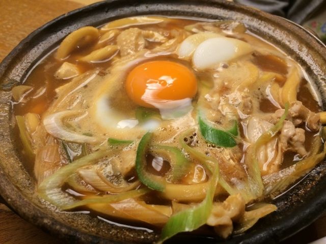 味噌煮込みうどんにはデフォルトで生卵が入っています。