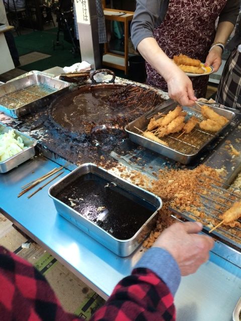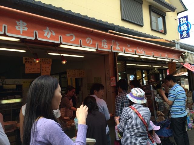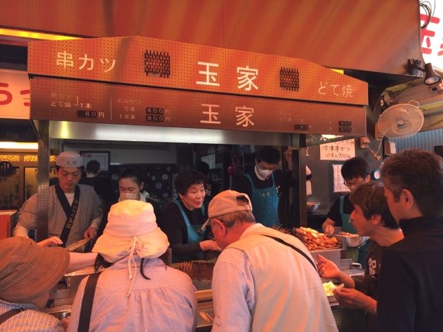 名物ってこともありますが、参拝客に比べて串カツ屋がすくないので、どの店も混んでます。