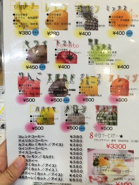 コーヒーにジュース。愛知県なので当然モーニングもあります。