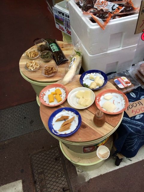 試食しながら、店先で何を買おうか悩んでいると、気のいい店主がいろいろ勧めてくれます。