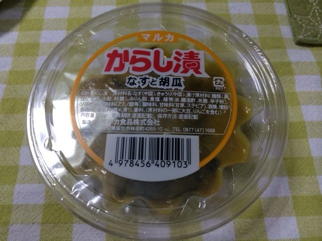 からしがまろやかで甘め、ナスの主張が少なく、きゅうりの歯ごたえが素晴らしい。