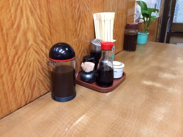 店内をぐるっと囲むカウンターに基本調味料。