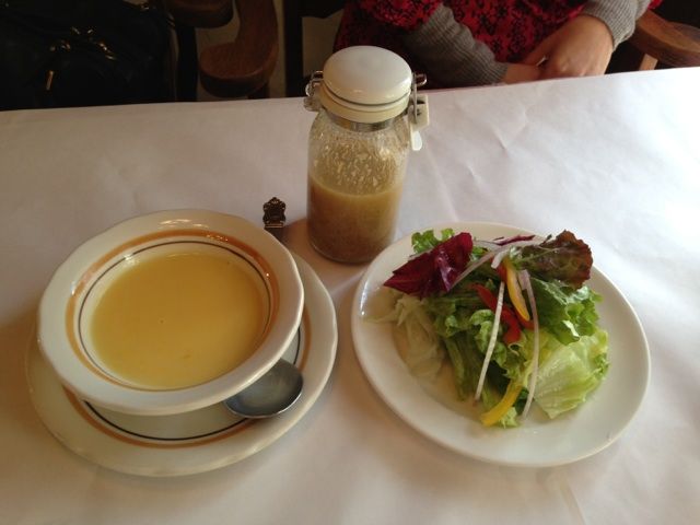 サラダにコーンスープ。