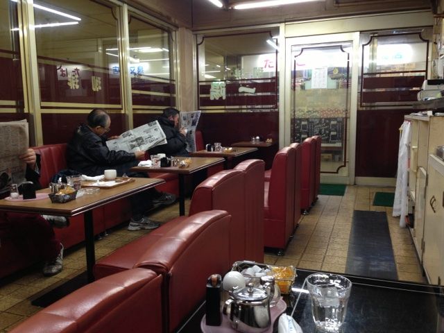 この店はスポーツ新聞を読みながらモーニングを食べるのが流儀らしい。
