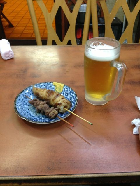 周りの客に負けじと、私もおでんに生中。