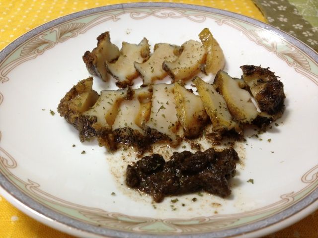 肝醤油のために裏ごしした残りも炒めて添えてみました。