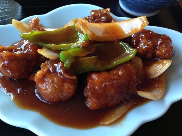 結構しっかり揚げてあるカツを甘めのソースにくぐらせてある。