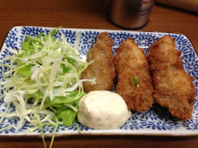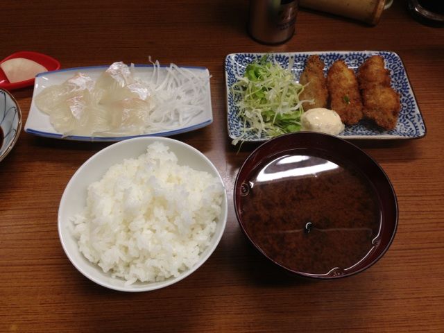 本日は冬なのでカキフライと、魚源さんなのでひらめにしました。