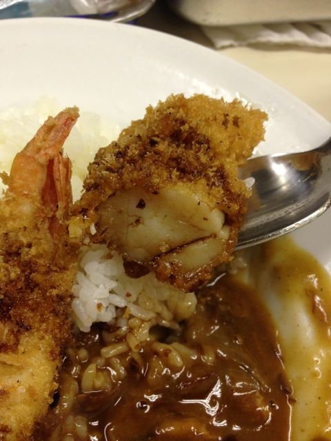 本日もシーフードフライカレー。牡蠣×2、アカシャエビ、ホタテ。