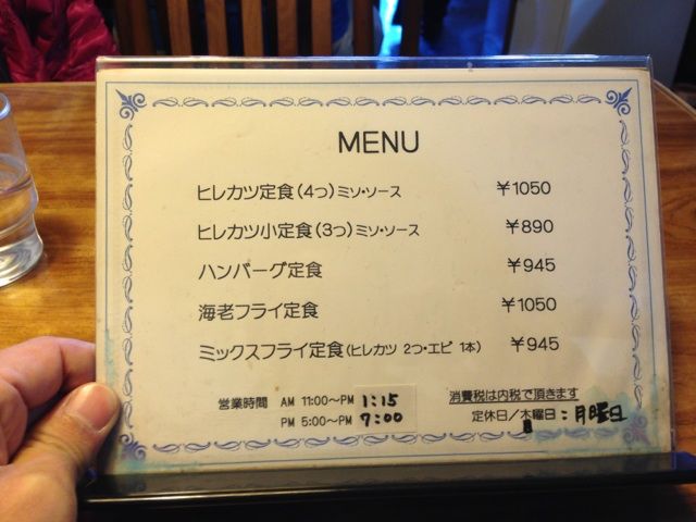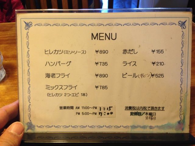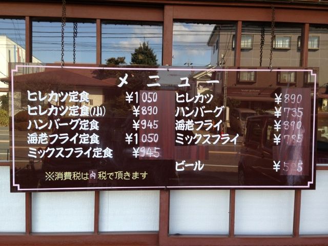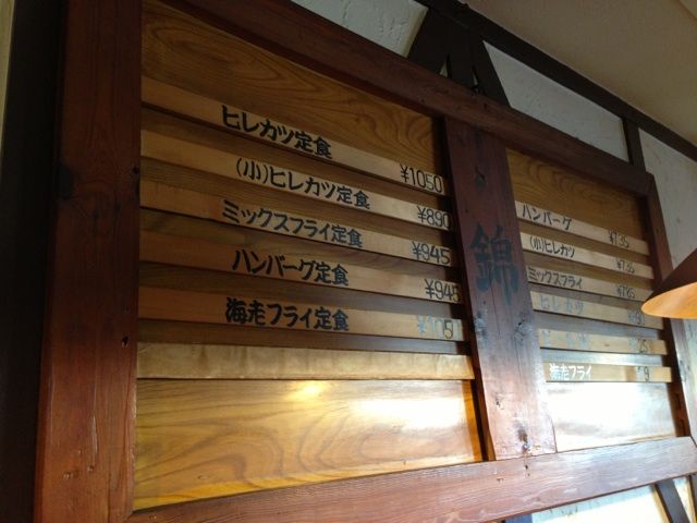 メニューはハンバーグ、ヒレカツ、ミックスフライ、エビフライとシンプルである。