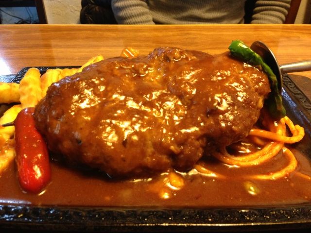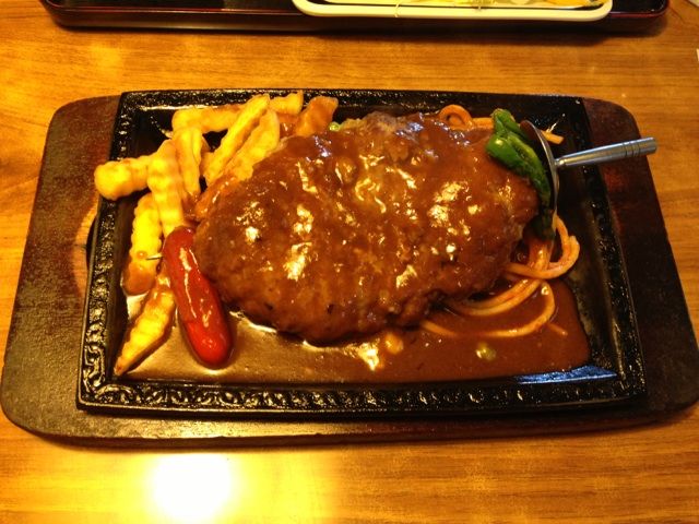 ちょっとパン粉が多い昔ながらのハンバーグ。