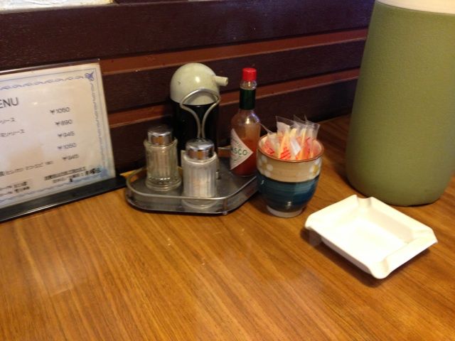 テーブルの上には灰皿に調味料。