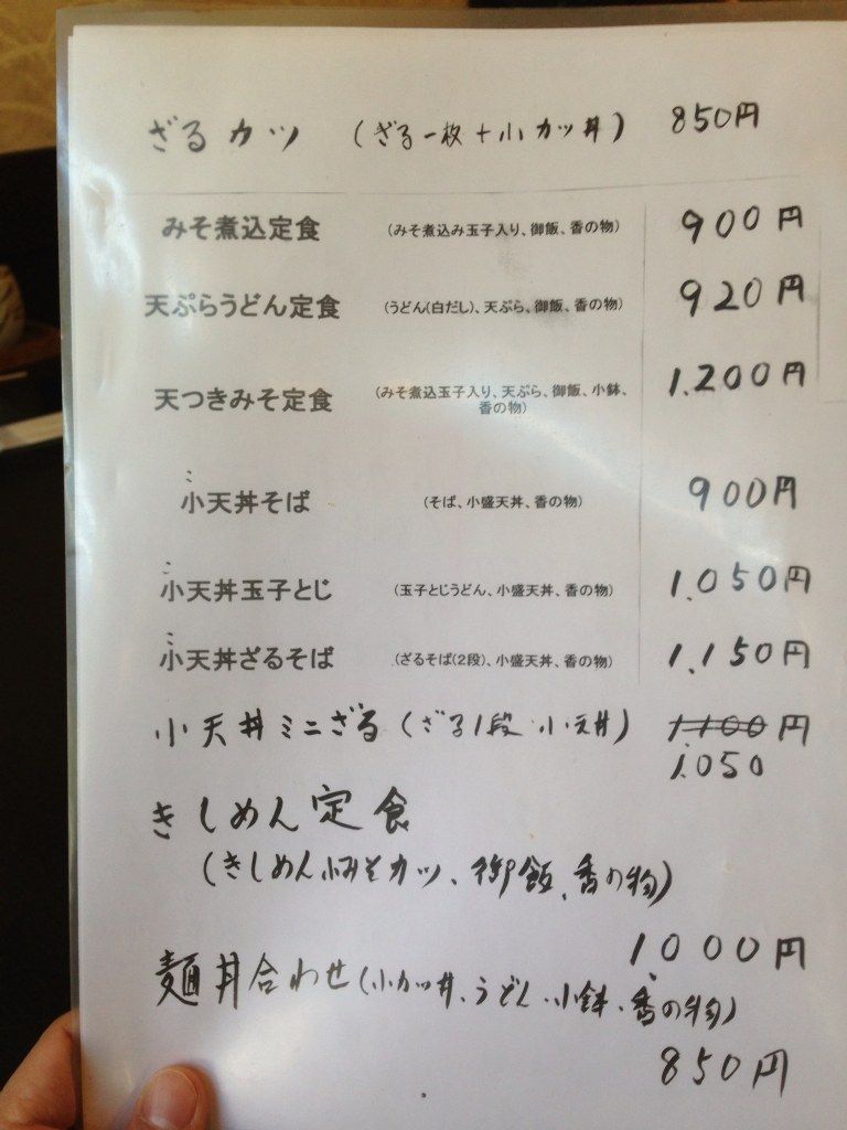 メニューが手書きである。