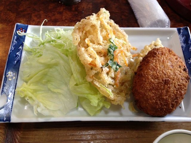 おかずは3皿から選びます。揚げ物、煮物、八寸みたいな奴。