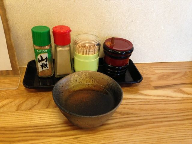 テーブルに山椒があるのは珍しい。