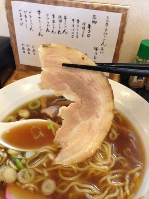 この大きいチャーシュー(豚バラ)が特徴的であった。