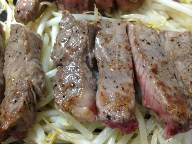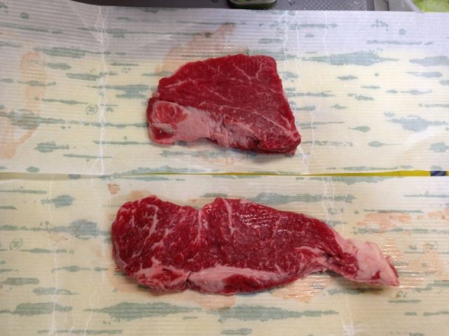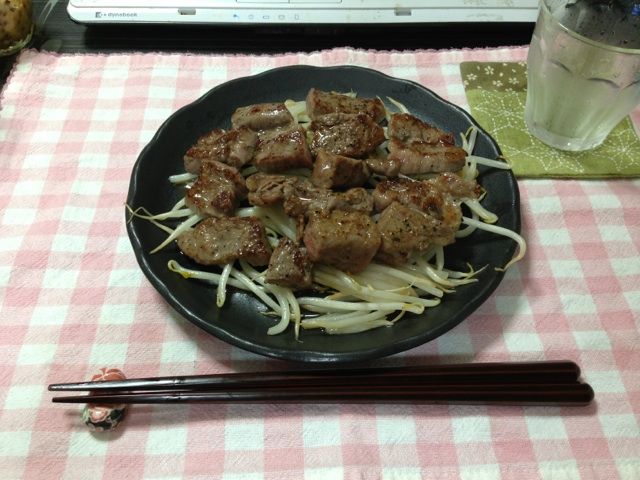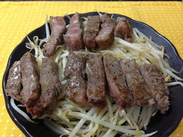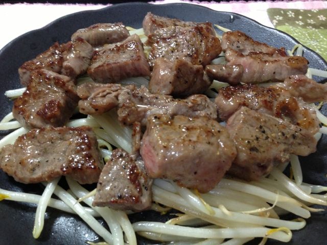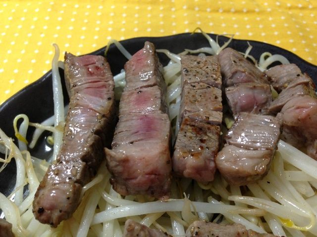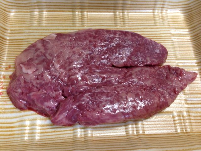 なかなかステーキを焼く技術を持っていないので、細かく切って焼くのが家の流儀になっている。