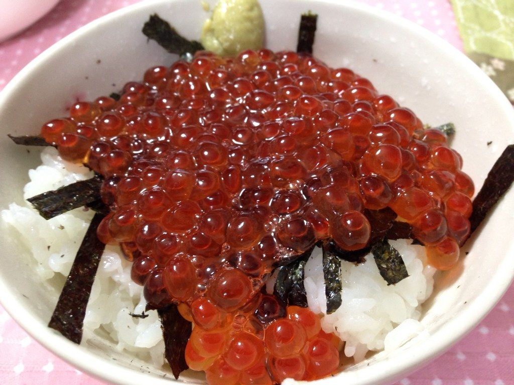 筋子に載せても良かったのですが、炊きたてご飯に刻み海苔をかけているうちに海苔の良い香りが鼻をくすぐります。いくらと共に口に入れるといつものいくら丼と違います。海苔が米といくらの甘味を強調します。生臭さも海苔の風味が吸収し、甘くてうま~いイクラ丼になっています。