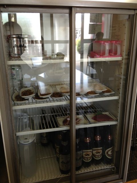 冷蔵庫にお惣菜に刺身。刺身はカツオとマグロかな。