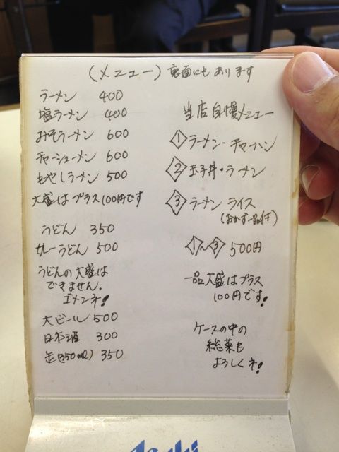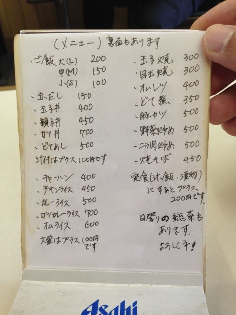 市場食堂には珍しくテーブルの上にメニューがあります。